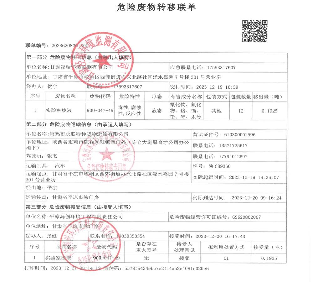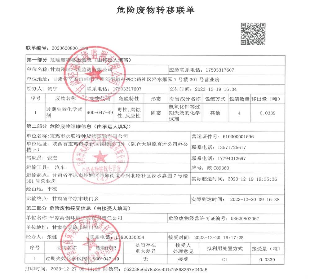 根據(jù)《中華人民共和國(guó)固體廢物污染環(huán)境防治法》(2020年9月1日修訂)的相關(guān)規(guī)定,甘肅涇瑞環(huán)境監(jiān)測(cè)有限公司依法及時(shí)公開(kāi)固體廢物污染環(huán)境防治信息,主動(dòng)接受社會(huì)監(jiān)督。