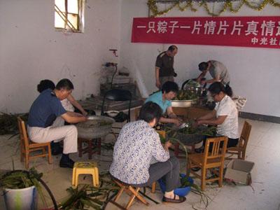 | ??????? 這幾天走在下班的路上,時(shí)不時(shí)能看到街邊有人賣粽子葉,碧綠的葦葉還帶著露水的清新;有人在賣艾葉,一小把一小把的艾葉,散發(fā)著略帶苦味的芳香。還有上了年紀(jì)的大娘,推著小三輪車,上面掛滿了花花綠綠的工藝品一樣精美的香囊。哦,一年一度的端午節(jié)又來到了。 ??????? 近幾年,端午前,利達(dá)公司都會想到那些遠(yuǎn)離家鄉(xiāng)的單身大學(xué)生員工,并提前為他們準(zhǔn)備一份端午節(jié)慰問品。這份慰問品主要是粽子還有咸鴨蛋、雞蛋。粽子是哪里來的?利達(dá)公司委托中光社區(qū)居委會幫助制作的。 ??????? 6月13日下午,我和黨總支王副書記一起,到居委會粽子制作現(xiàn)場。一進(jìn)門就被大簸籮中成堆的粽子所吸引,各種各樣的粽子綠盈盈的,有的像巨型的綠鉆石,棱角分明;有的像個(gè)綠色書包,據(jù)說叫“情侶粽子”,還有方形的、菱形的,這些粽子像是精美的藝術(shù)品。五六位退休的老師傅圍坐在一起,中間是個(gè)大盆子,白色的米水中飄了一層粉色的飽漲的花生,旁邊還有調(diào)料腌好的鮮肉,清水浸泡好的窄窄的葦葉。 看著那些漂亮結(jié)實(shí)的粽子,我忍不著請教袁師傅這粽子怎么包,他耐心地給我做示范。這些粽子不只是好看,個(gè)兒大飽滿,咸的甜的都有,“內(nèi)容”也很是豐富!這時(shí),居委會工作人員又拆開了一袋糯米,把瑩白如玉、珍珠一樣的糯米嘩嘩倒進(jìn)盆中。 ??????? 我看到在房間窗下,還有一小堆洗好未煮的咸鴨蛋,淡綠色、粉白色看上去很新鮮,影影綽綽似乎看到里面的紅心兒。從準(zhǔn)備包粽子,精選材料,到這兩天的制作和蒸煮粽子,居委會盡心盡力,不辭辛苦;幾位包粽子的師傅一坐就是半天,幾分鐘才包好一個(gè)粽子;他們靈巧的雙手不閑著,一個(gè)接一個(gè)把葦葉和糯米、花生、蜜棗、鮮肉變成了可愛的粽子,看上去很神奇。為了讓那些家在外地的單身大學(xué)生員工吃上美味可口的粽子,他們不顧天熱,不辭勞苦,傾注了深情,把利達(dá)公司對單身大學(xué)生員工的關(guān)愛、信任、期望包進(jìn)了端午粽子中。 ??????? 居委會上午開始把包好的粽子同時(shí)放在爐子上煮。我們知道,粽子的蒸煮需要時(shí)間,需要慢火悶煮。居委會趙師傅、董師傅守著兩大鍋飄香的粽子,中間續(xù)了好幾次煤火,那滾燙的蒸鍋?zhàn)阌?00斤重,他們竭盡全力才抬下來。到夜里煮好了第一批兩鍋,到6月14日早上第二批粽子又新鮮出爐。我仿佛看到那些大學(xué)生領(lǐng)取粽子時(shí)幸福的笑容。 ??????? 以一闋《菩薩蠻?端午粽子》結(jié)束本文:“包中香米分邊角。葦葉包就清香飄。端午送關(guān)愛,年年五月初。公司恩義重,對景承歡寵。辛苦五六天,有勞居委會?!?(詹敏) ??????? 以下是相關(guān)圖片: |
