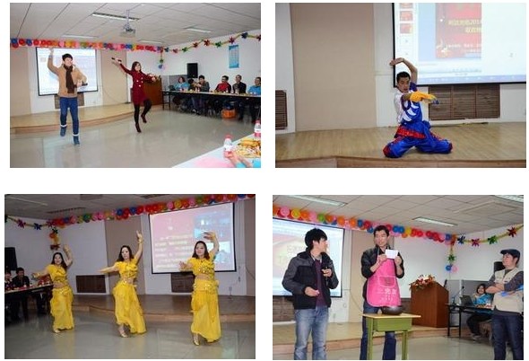 ????? 晚會現(xiàn)場雖然比較節(jié)儉,卻處處洋溢著喜氣洋洋的和諧氛圍。晚會內(nèi)容豐富多彩,包括歌曲、戲曲、舞蹈、小品、魔術、男女對唱、武術等十五個節(jié)目,給全體觀眾們帶來了一場美妙的視聽盛宴。一首合唱歌曲《猜》拉開本次晚會的帷幕;熱辣,奔放的西班牙之夜、印巴熱舞給大家?guī)У搅水悋橛颍桓鶕?jù)公司文化改編的小品《找工作》妙趣橫生,耐人尋味,迸發(fā)出積極向上的正能量;武術表演懸念頓生,豪氣沖天;歌曲《暗香》、《猜》演繹了情深意長、溫馨浪漫的真摯情感;詩朗誦《咱們工人有力量》,節(jié)目巧妙運用詩朗誦獨特的語言藝術,謳歌公司發(fā)生的變化和取得的輝煌成就,歌頌了利達人的敬業(yè)精神、團隊合作精神,真情流露,感人肺腑,讓在座的觀眾贊嘆;小品《胡導》以其詼諧幽默的語言、滑稽搞笑的到位表演的藝術表現(xiàn)形式更是笑爆全場;更有郭富強表演的魔術和蔣麗的戲曲表演,讓我們領略了利達人別樣的激情與風采。抽獎活動穿插期間,將聯(lián)歡會氣氛一次次推向高潮。