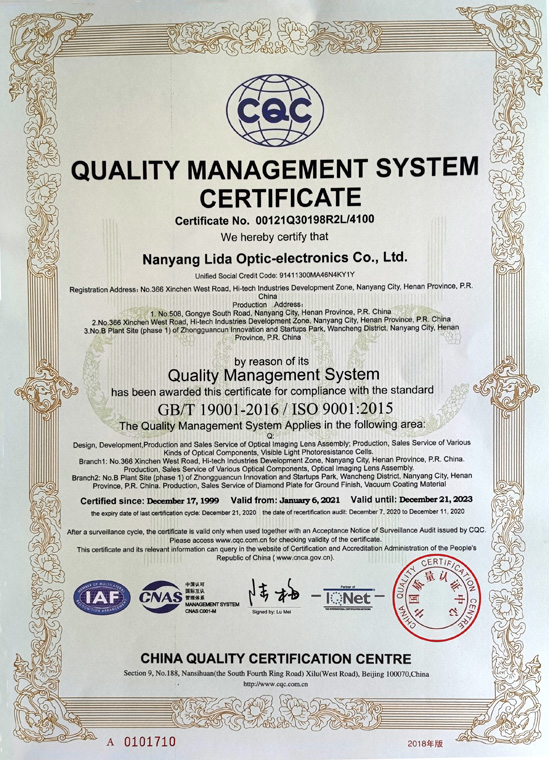 質量管理體系認證證書(英文)
